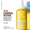 A Água Solar Protetora Iluminadora Corporal Vichy Capital Soleil FPS 50 contém 200 ml, prolonga o bronzeado por 1 mês. Com textura aqua-fluida bifásica leve como água, rápida absorção, é indicada para todos os tipos de pele.